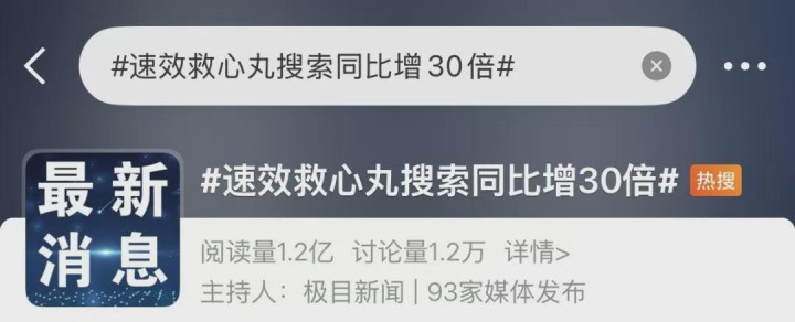 3月25日,一则对于腹黑用药的音尘冲上热搜:#速效救心丸搜索量同比激增30倍#。