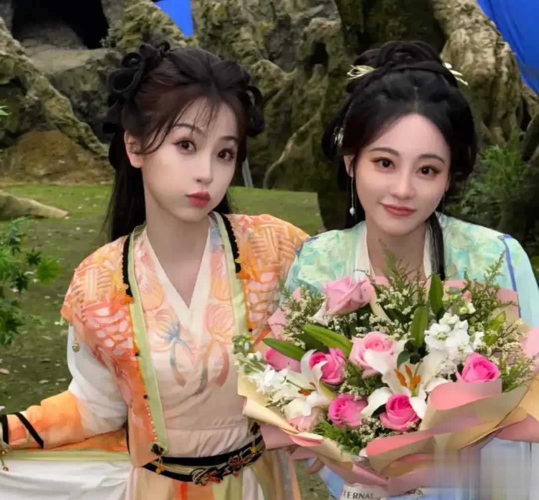 图中身着玄色慑服的是祝绪丹,黄色慑服的是虞书欣。