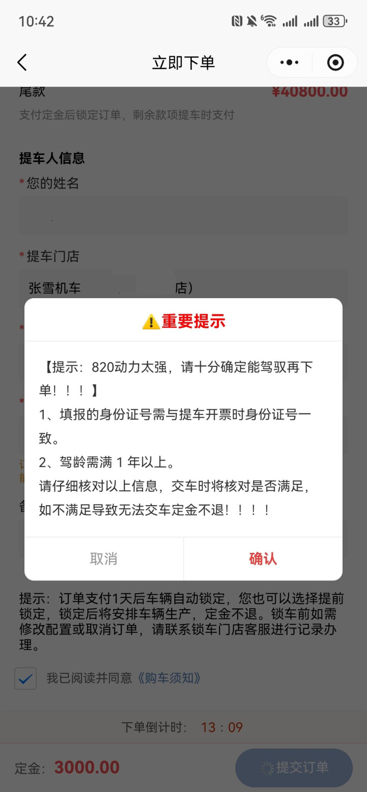 另外,由于张雪条款购买820RR的主顾至少要满1年驾龄,这也催生了不少“代买工作”,由他们来预订,用我方的信息提车后,再转手给主顾,代买用度200元到1000元不等。