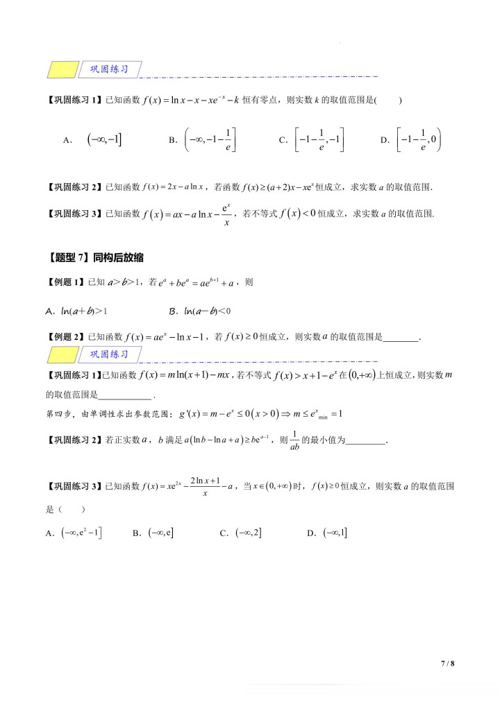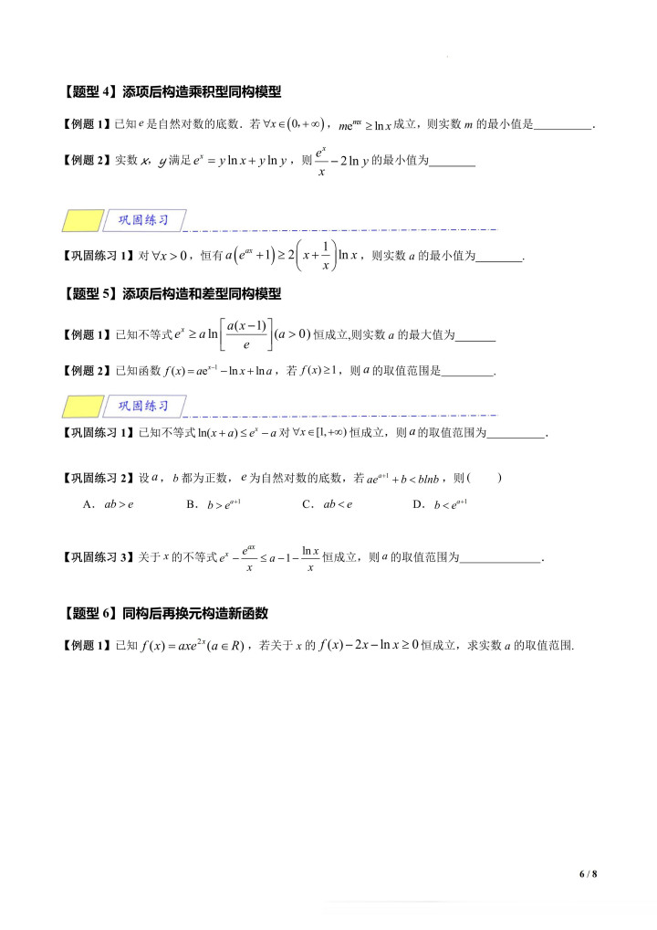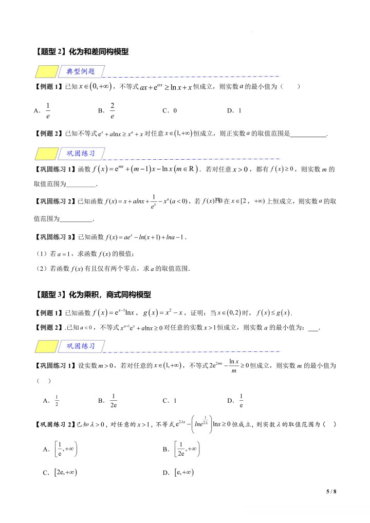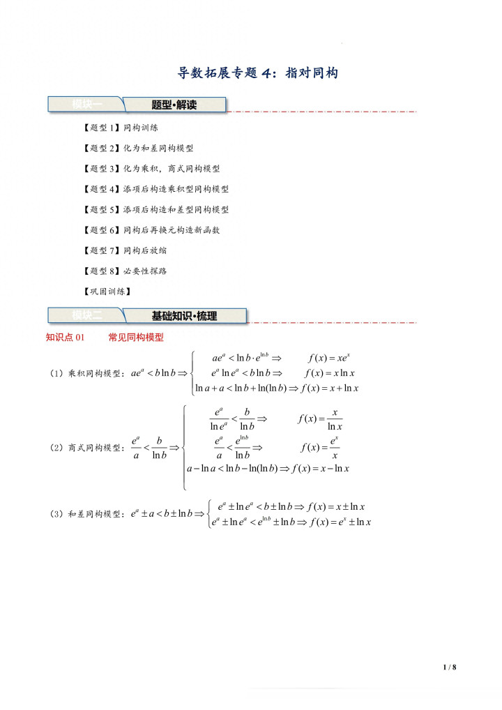 滚球app中国官方网站 导数拓展专题4: 指对同构【8大题型】