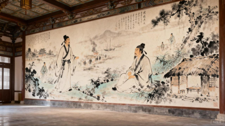 大雅堂是必须要记载的。“大雅堂”之名源自《诗经》,“大雅堂”的主角当然是杜甫,正面墙壁上嵌入着一幅面积达64普通米的磨漆壁画,成齐东谈主说这是咫尺国内最大的一幅磨漆壁画。壁画以连环组合的相貌,用天简直画面展示出杜甫一世最主要的阶段,比方丁壮漫游,比方窘况长安,比方遭乱流离,比方寓居成齐,比方羁留夔府,比方悠扬湖湘。壁画在“画说”杜甫一世最主要时段的同期,也不忘“诗说”杜甫的诗,在有限的画面内形象地展示出《望岳》《秋兴》《茅庐为秋风所破歌》等代表作。