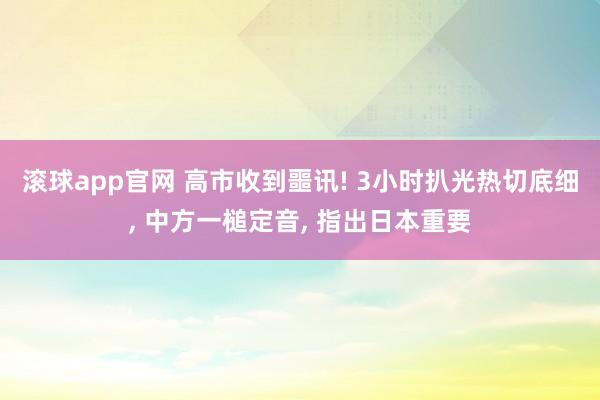 滚球app官网 高市收到噩讯! 3小时扒光热切底细, 中方一槌定音, 指出日本重要