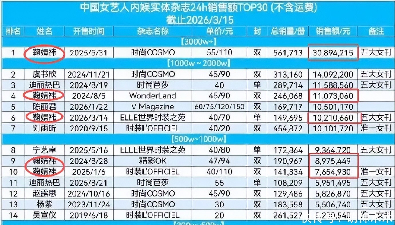 看到鞠婧祎一册杂志的收入就有1100万,不少网友残暴了质疑,以为这个把柄不严谨,扒出了鞠婧祎那本杂志的骨子销售额是900万。