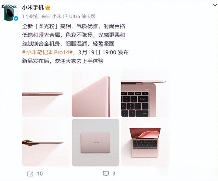 靠谱的滚球app中国官网 小米条记本Pro 14新增柔光粉配色, 将于3月19日发布