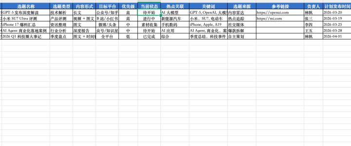 对推行责任者而言,半天的技能,我摸索出了三大中枢场景:推行雷达、热门跟踪、选题表格不断。