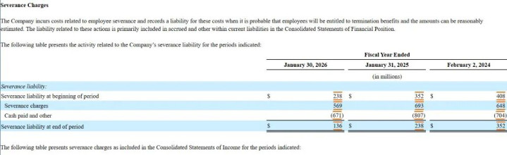这并非一次性的救急要领,而是一场有筹办的“瘦身”。回顾2025财年,戴尔职工东说念主数不异减少了约10%(约1.2万东说念主),两年累计减员鸿沟跨越2.3万东说念主。为了完成这场手术刀式的颐养,戴尔支付了高尚的“手术费”:2026财年支付的收场费高达5.69亿好意思元,加上上一财年的6.93亿好意思元,两年仅在“让东说念主离开”这件事上就消费了跨越12亿好意思元。