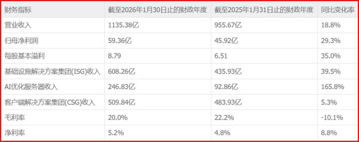 要相识戴尔为安在功绩巅峰期挥刀自斩,必须拆解其2026财年的财报。从账面上看,戴尔的功绩如实光鲜得令东说念主神往: