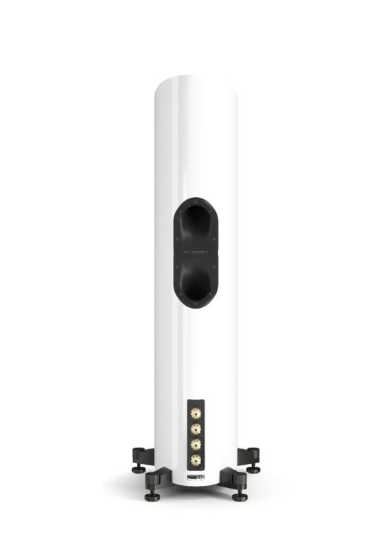 两只低音运行单位各配有一个孤苦的一语气蔓延倒相孔,向后排气。3.5分频(800赫兹、2.5千赫兹和12.5千赫兹)分频器分为低音和中高音歧路——因此配备了两组坚固的4毫米/铲形接口接线柱