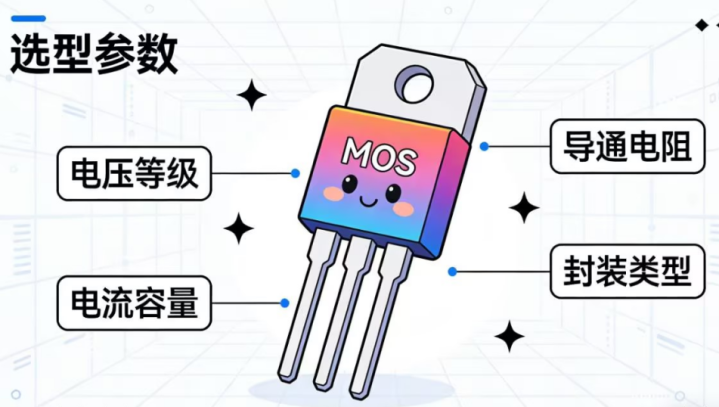 看性能选参数:高频、大电流、大功率→N-MOS+低Rds(on)+高Id;低频、小电流、便携场景→P-MOS即可,兼顾本钱。