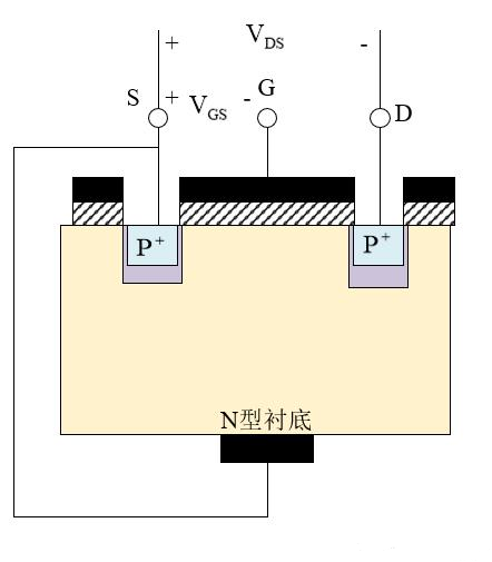 P-MOS:源极(S)必须接电源正极,漏极(D)接负载。范围时,栅极(G)输入低电平,Vgs为负,管导通。