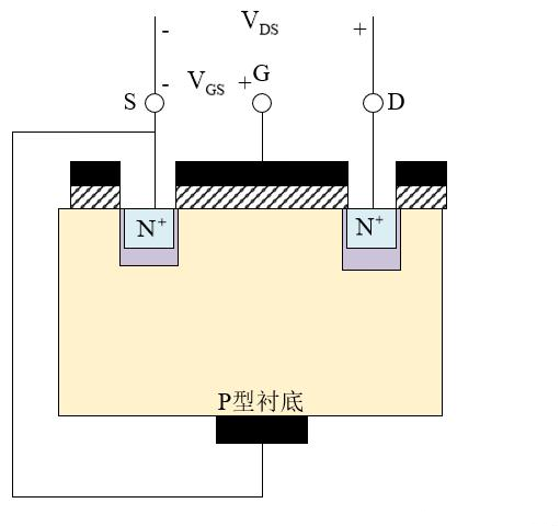 N-MOS:源极(S)必须接地,漏极(D)接负载电源正极。范围时,栅极(G)输入高电平,Vgs为正,管导通。