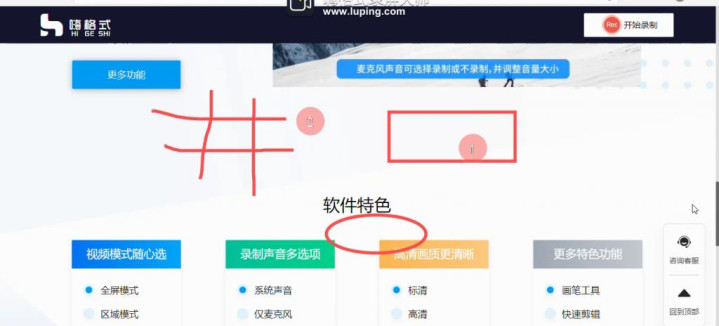 1、快速启动:选拔场景预设(网课/游戏/演示),一键进入录制样式。