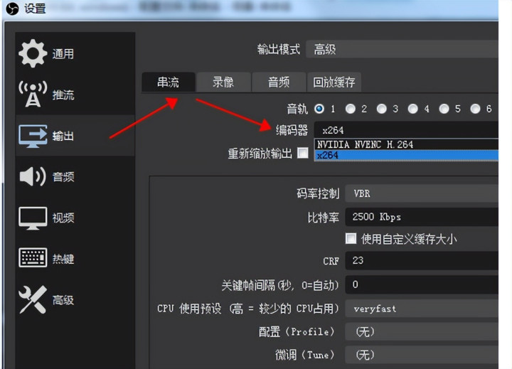 3、在”诞生-输出”中选拔编码器(x264/NVENC)、诊治视频比特率(忽视8000kbps以上保画质)诞生录制样子(MKV防损坏,后期转MP4)