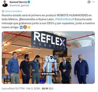 新莱昂州州长塞缪尔·加西亚在纽约亲身晓喻了这一协作。对墨西哥而言,这是先进制造业“近岸外包”的符号性事件;对Reflex而言,这是从原型走向领域化的关节一跃。