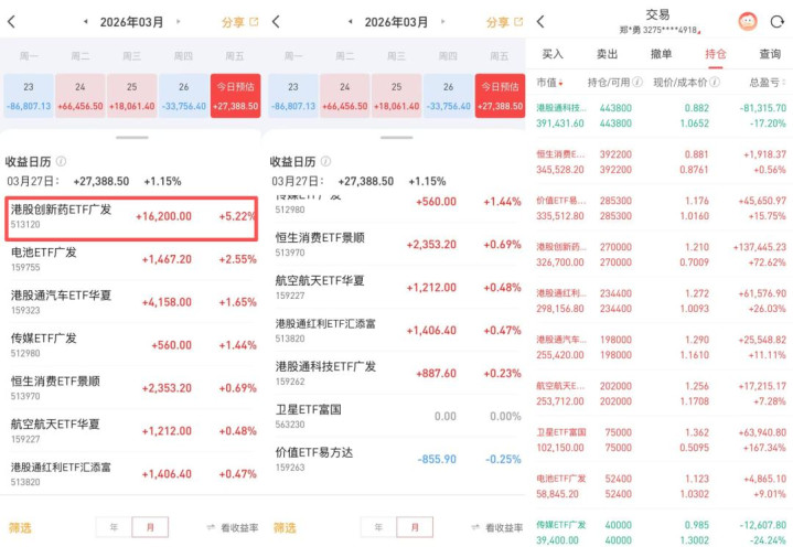 (1)ETF实盘账户,今天盈利+2.7万;