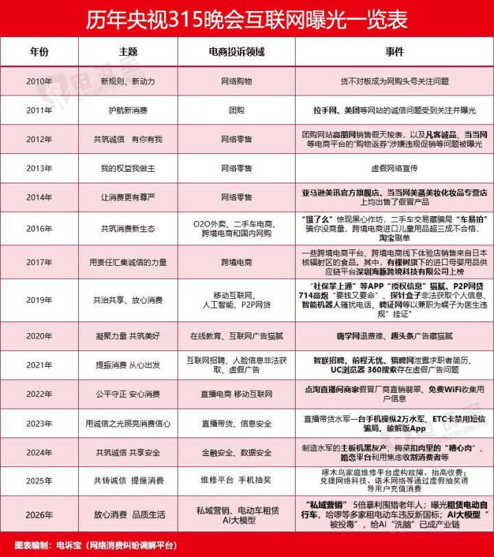 近三年的315晚会,互联网行业的曝光维度愈增加元,从传统的电商、外卖扩张到了新式营销渠谈和前沿手艺应用范围。