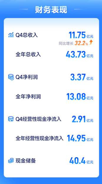 3月18日,保障科技界领军企业元保(NASDAQ:YB)发布抑制2025年12月31日止三个月和2025年度未经审计的财务事迹。财报数据裸露,元保全年营收链接保捏持重增长,达到东谈主民币43.73亿元,同比增长33.1%;公司盈利技艺捏续升迁,净利润达东谈主民币13.08亿元。抑制2025年12月31日,元保现款储备达东谈主民币40.4亿元。单季度推崇相同亮眼,增长势头捏续向好。第四季度,公司营收达东谈主民币11.75亿元,同比增长32.2%,净利润达东谈主民币3.37亿元。