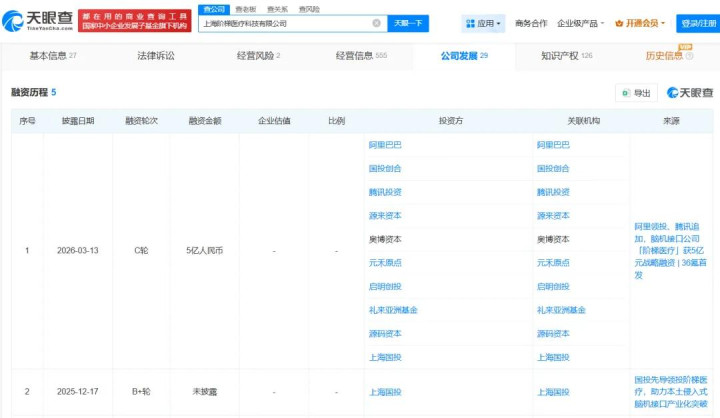 这亦然阿里和腾讯在该界限布局的首家企业。至此,路线医疗在近一年内累计融资金额高出11亿元。
