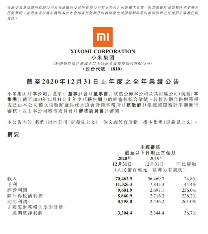 这仅仅毛利,HG官网(HoGaming)那么净利润简略是若干呢?小米在财报中并未说起。