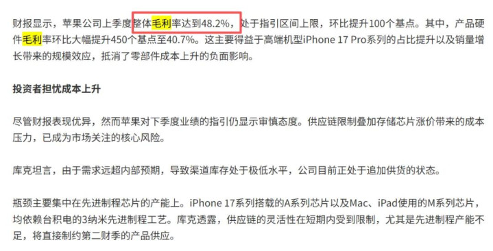 公共知说念苹果的居品硬件的毛利率是若干么?凭据财报露馅是40.7%。