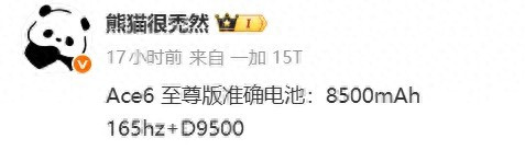 3月30日音讯,近日有爆料称,一加下一代性能旗舰——一加Ace6至尊版行将登场,其中枢竖立已提前浮出水面。把柄数码博主@熊猫很禿然表示的信息,该机将搭载高达8500mAh的大容量电板,同期配备165Hz超高刷新率屏幕,并首发联发科天玑9500芯片,举座定位延续高性能与长续航并重的念念路。
