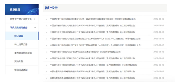 3月16日,中信银行天津分行深刻“对于2026年第1期个东说念主不良贷款(个东说念主滥用贷款)转让神情不良贷款转让公告”,本次转让钞票笔数1123笔,加权平均过期719.16天,未偿本息总数1.12亿元。