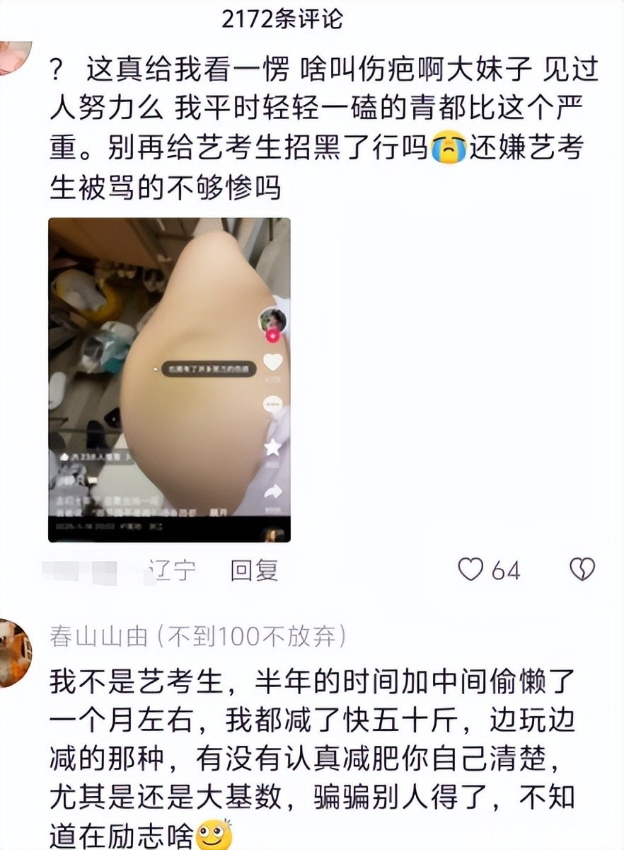 公共说哪怕是文化课考生,浅薄轻轻一磕也比这个严重,请别再给艺考生招黑了。要知谈艺考生的勤奋是无法作秀的,因为后果径直就写在你的个东谈主发达上。