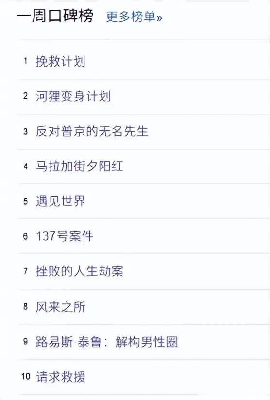 同期,一周豆瓣口碑榜亦然可以了解下的。我们一谈来看,这一周,又有哪些新的影片上榜吧。