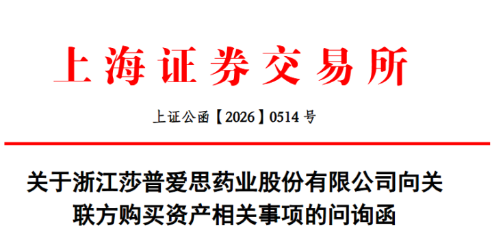 中新经纬3月18日电据上交所网站3月17日音尘,上交所就浙江莎普爱想药业股份有限公司(下称“莎普爱想”)向筹办方购买金钱有关事项下提问询函。