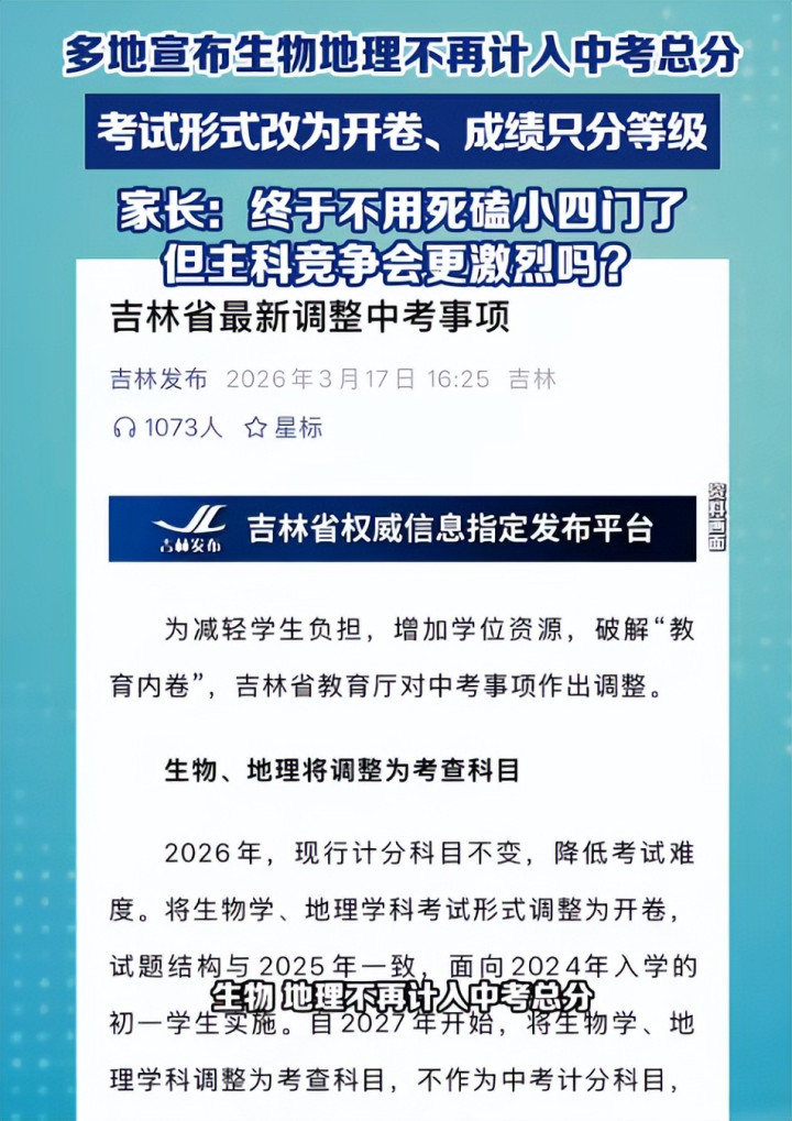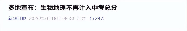 新华日报|多地晓喻:生物地舆不再计入中考总分.2026