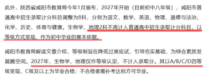 咸阳、杨凌、渭南三地均晓喻,生物、地舆不再计入及第总分,仅当作品级参考。