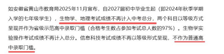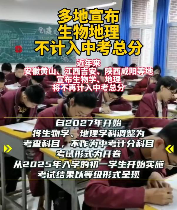 此外,安徽、江西、湖南等地也径直明确,生物、地舆成绩不再计入中考总分。