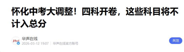 华声在线|怀化中考大疏通!四科开卷,这些科目将不计入总分.2026