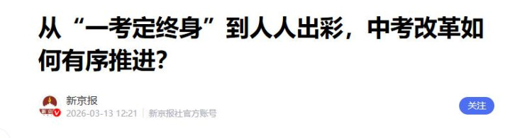 新京报|从“一考定终生”到东说念主东说念主出彩,中考更动怎样有序激动?2026