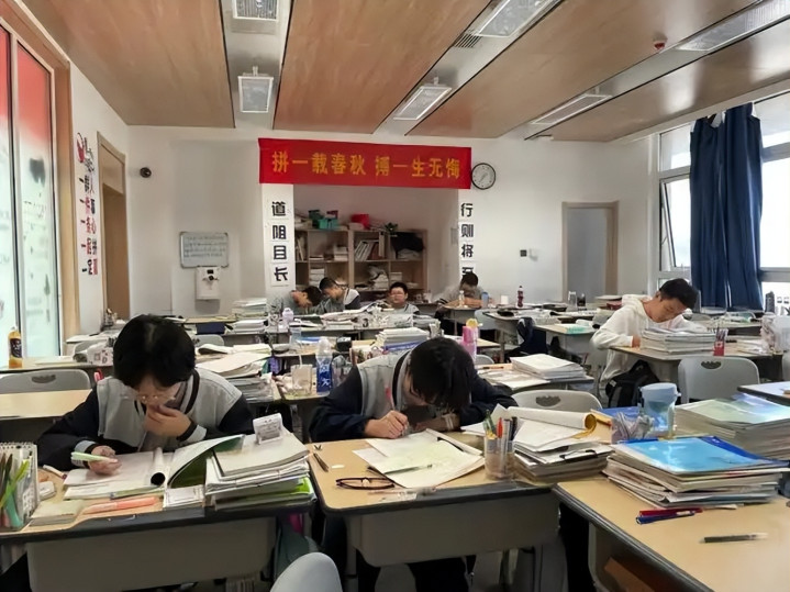 日间在学校上课,晚上回家要刷地生的习题、背知识点、作念模拟卷,周末要上补课班、冲刺班。