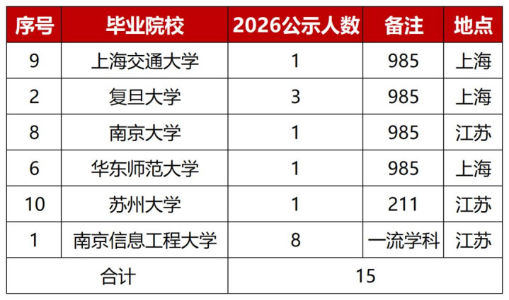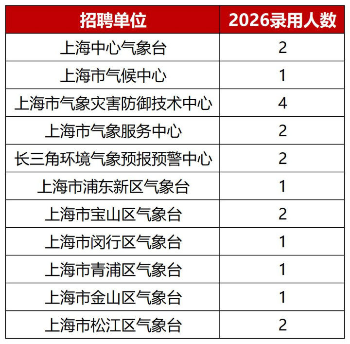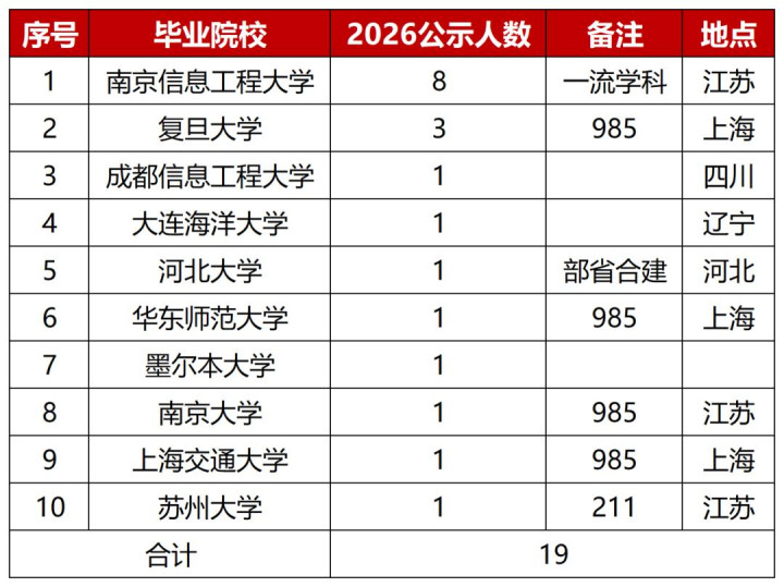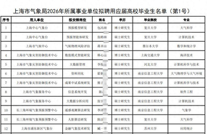 确认《上海市气候局2026年所属行状单元拟聘请应届高校毕业生名单(第1号)》,认为公示19东说念主。