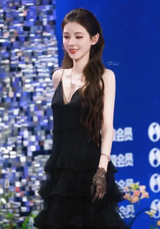 她身着一袭玄色丝绒贴身礼裙,领口是从简的V领筹算,本欲借修身模样彰显气场,干系词内容遵守却不尽东谈看法。