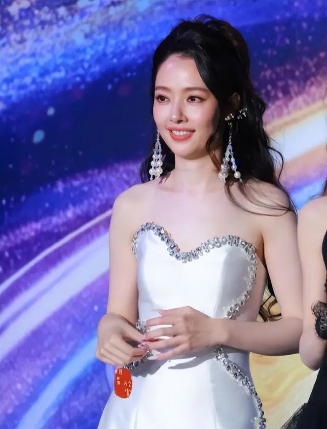 她走在红毯上,门径略显敛迹,面临镜头时笑脸有些僵硬,偶尔抬手整理裙摆,能看得手臂上隆起的青筋。