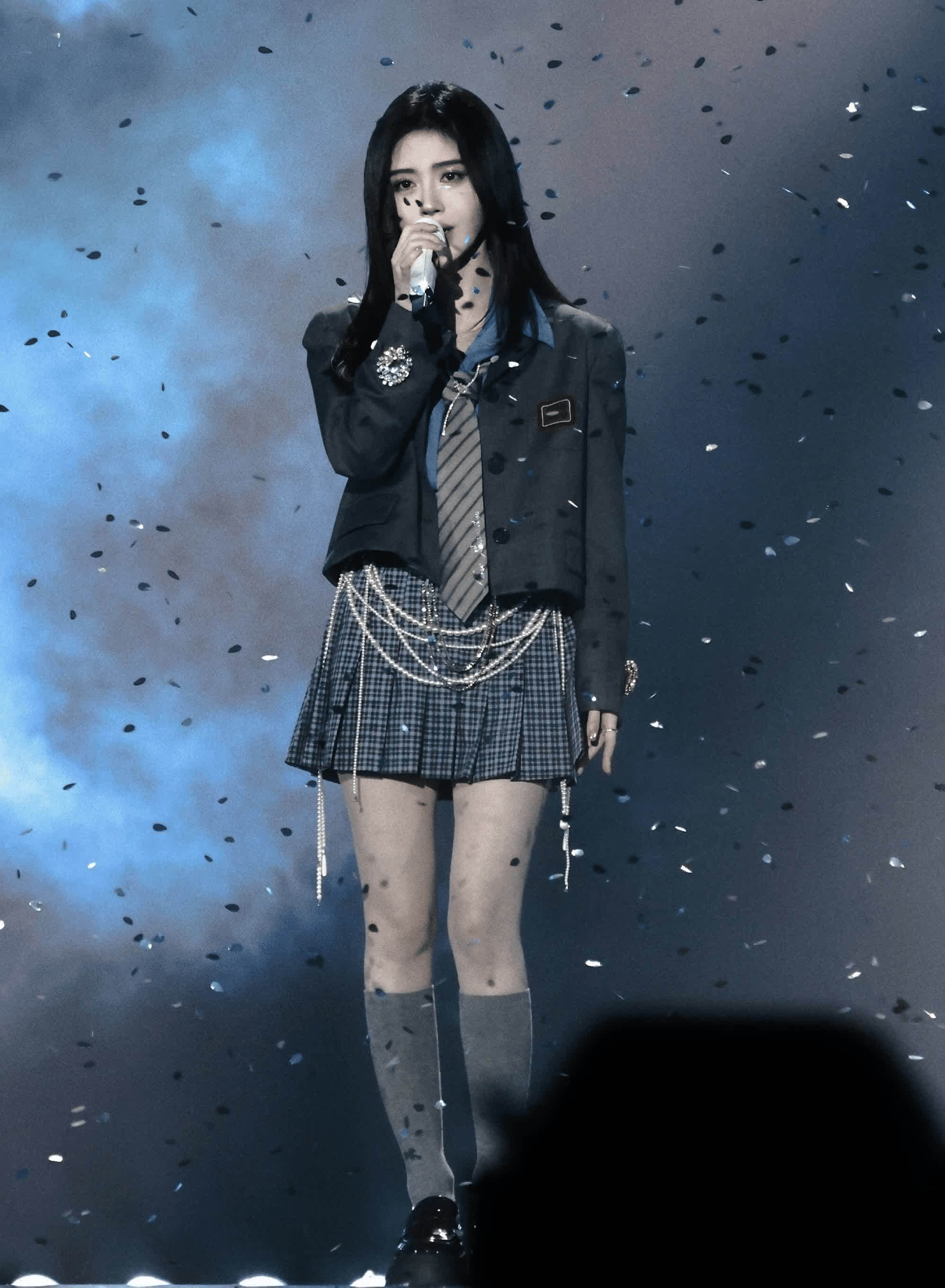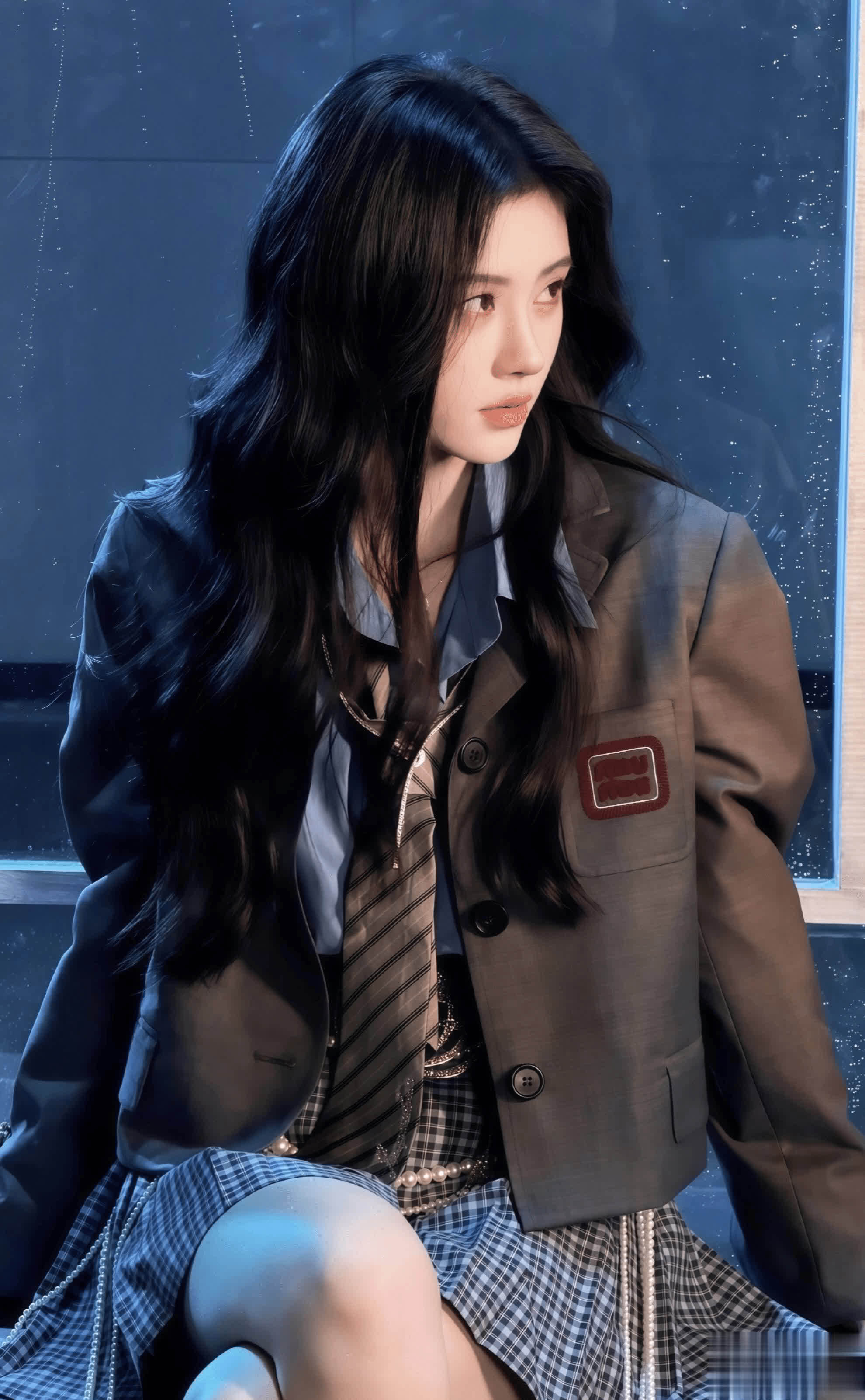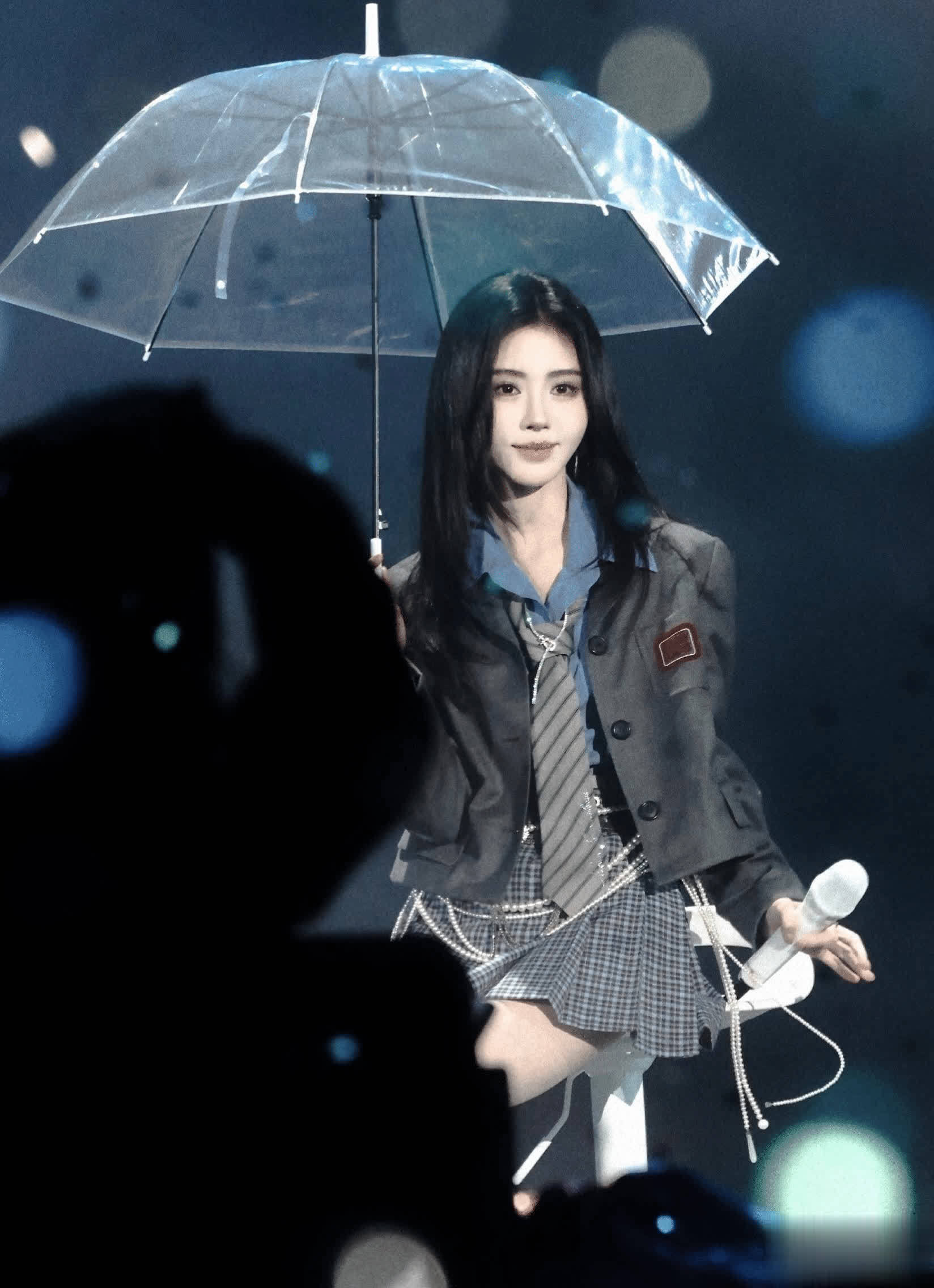 鞠婧祎身着一套藏青色学院风套装,珍珠腰链点缀其间,冷白皮在蓝调灯光下宛如漫画中走出的女主角。她并未像无为艺东谈主那样顺利走向麦克风,而是接管了专科模特般的“停顿—回眸—激动”呼吸式走位。这种安宁不迫、气场全开的姿态,让不雅众朦胧间合计误入了一场高定秀场,纷繁辱弄“受奖礼秒变个东谈主秀场”,将蓝本属于典礼感的要领,升华为了一场视觉艺术的享受。