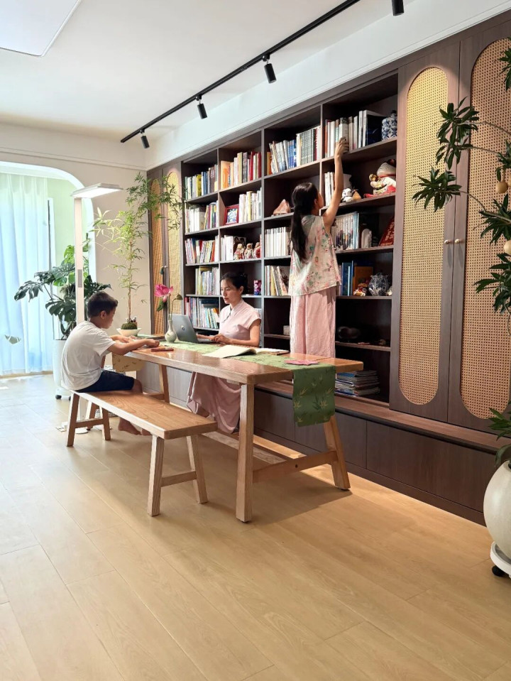 有娃家庭首选满墙书厨,不光能收纳竹帛、玩物,还能营造书香氛围,孩子没事就翻书看,比天天看电视强百倍。
