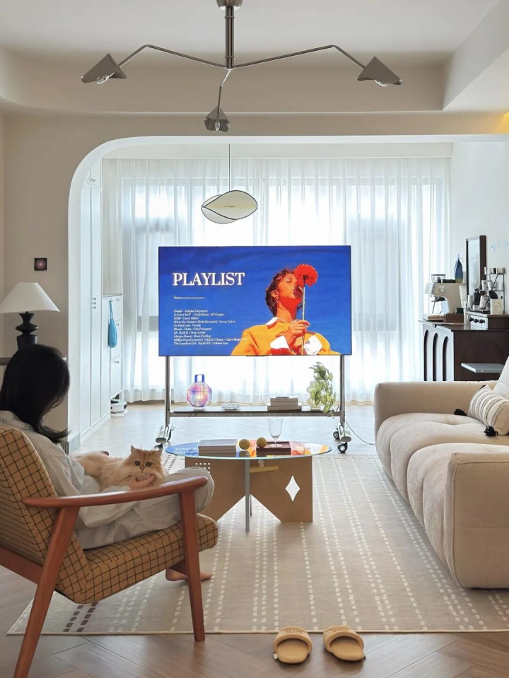 这种纯真随心,念念在客厅看就放客厅,念念在卧室看就推卧室,瑜伽、健身、打游戏齐浅易,墙面还能盛大作念收纳、挂粉饰,完全不突破,目田又随心。