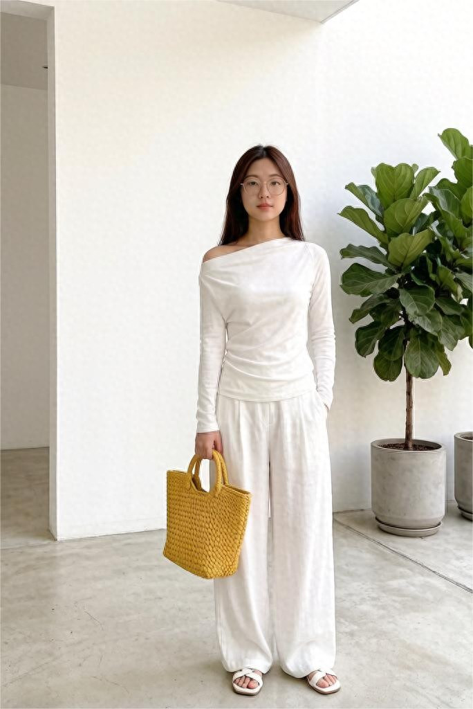 除了肤色和五官不错看成判断相宜哪类全白造型外,不同材质的白色单品上身呈现恶果亦然不同的。