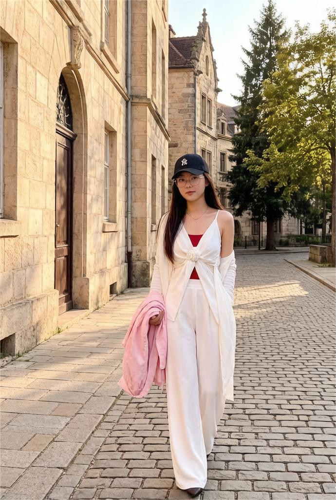 心爱浓妆的姐妹,在挑选全白单品时,不错走轻熟纯欲道路,这种情况下,上紧下松的单品组及格局值得模仿,运用单品宽松度勾画躯壳线条,唯好意思又高档。