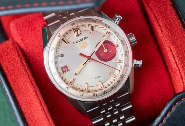 百年灵的马年限量款是基于 TOP TIME B01 RACING 腕表稍稍改革少许细节而来的。38 毫米的枕形精钢表壳,表盘是复旧赛车感的吵嘴配色。在吵嘴色的盘面中,红色的计时功能关系指针绝顶漂亮,操纵对称的方圆形子盘强化了这枚表方中带圆的视觉立场,是一块同期领有高等审好意思和复旧情愫的好表 —— 也便是说 TOP TIME B01 RACING 本人就还是鼓胀优秀。