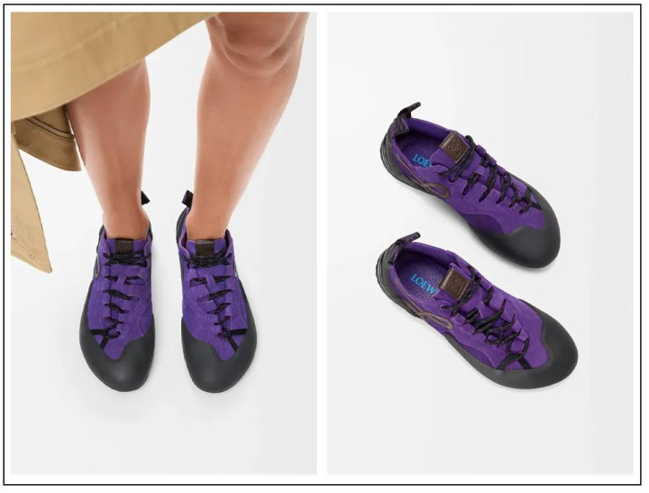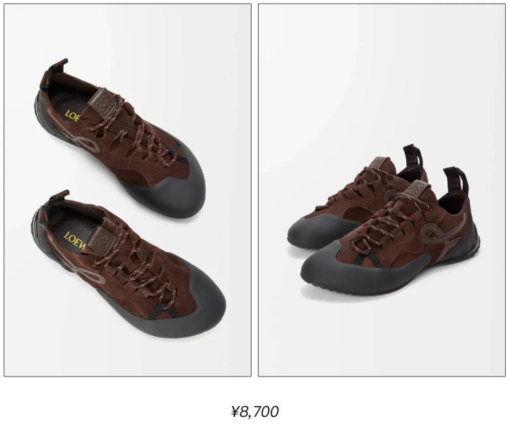 鞋子来自Loewe,名字叫Grip。有着一股子攀岩即视感,象征性的管状攀岩鞋带以及分散称鞋头造型完成了功能性和前卫度的迷惑。