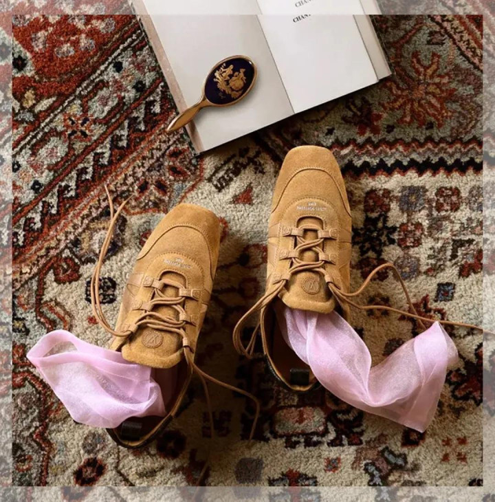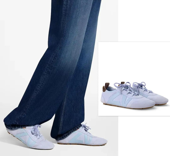 接下来是LV,上一季推出的Sneakerina芭蕾通顺鞋这一季也在配色和材质上作念了更新,使得合座看着不那么“时装”,愈加接近闲居东谈主不错穿戴的格局。