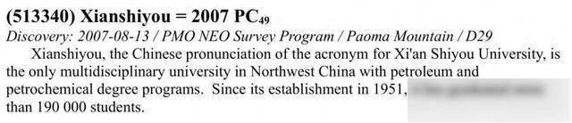 称为“西安石油(Xianshiyou)星”